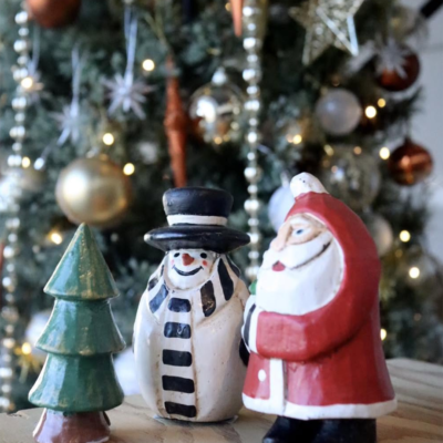 インドネシア・バリの工場でひとつひとつ手彫りされているので、それぞれが違った表情を見せてくれます。お気に入りのサンタを探してみてくださいね。
