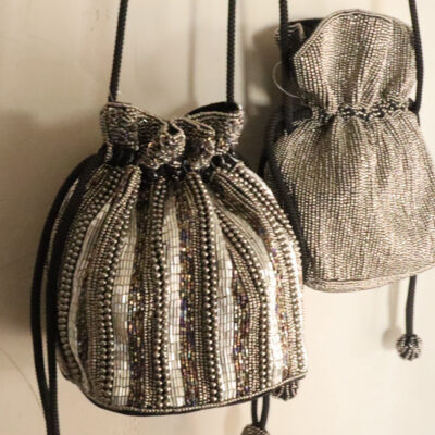 ハンドルはビーズ刺繍のものとレザーストラップで2wayで楽しめます。