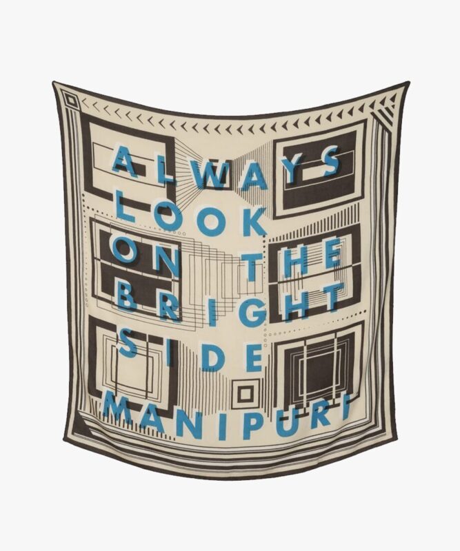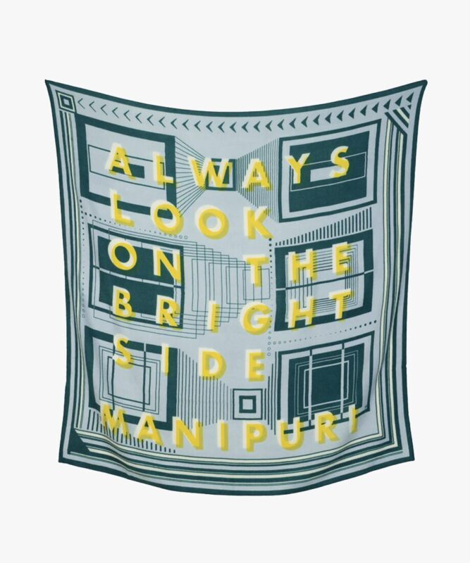 ヘリンボーン地に manipuri のスカーフ柄を贅沢にプリントした、色鮮やかな大判ストール。