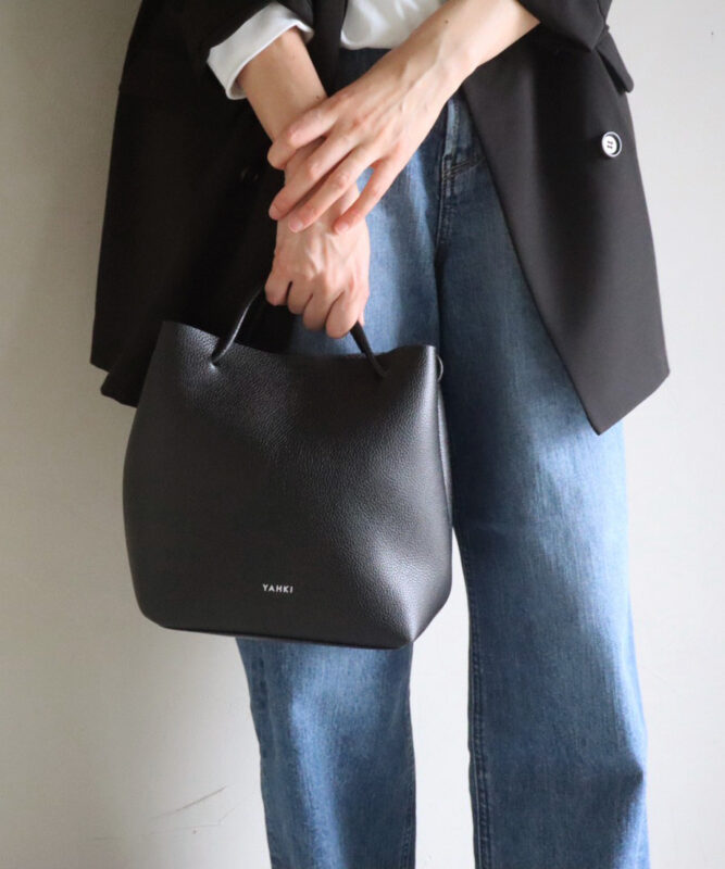 SOFT SHRINK レザーを使用したクロスボディバッグ。無駄を削ぎ落としたミニマルなデザインに、2本の丸紐ハンドルと底を一周するベルトディテールがアクセントを加えています。このベルトは装飾でありながらストラップとしても機能し、斜めがけスタイルへスムーズに切り替え可能。ハンドバッグとしてもショルダーバッグとしても使える2WAY仕様です。コンパクトながら十分な収納力を備え、日常使いにぴったりな実用性と上品なカジュアル感を兼ね備えたアイテムです。