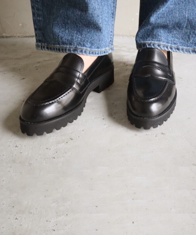 実績ある木型をベースに、使いやすさと品質を追求したコインローファー。すっきりとした印象を与える“アドラーモカ”デザインを採用し、長く履いてもきれいめな雰囲気を保てます。柔らかなアッパーレザーと高めたクッション性で、履き始めから快適な履き心地に。さらに軽量で厚みのあるソールを備え、ボリューム感のあるボトムスとも好相性な一足です。