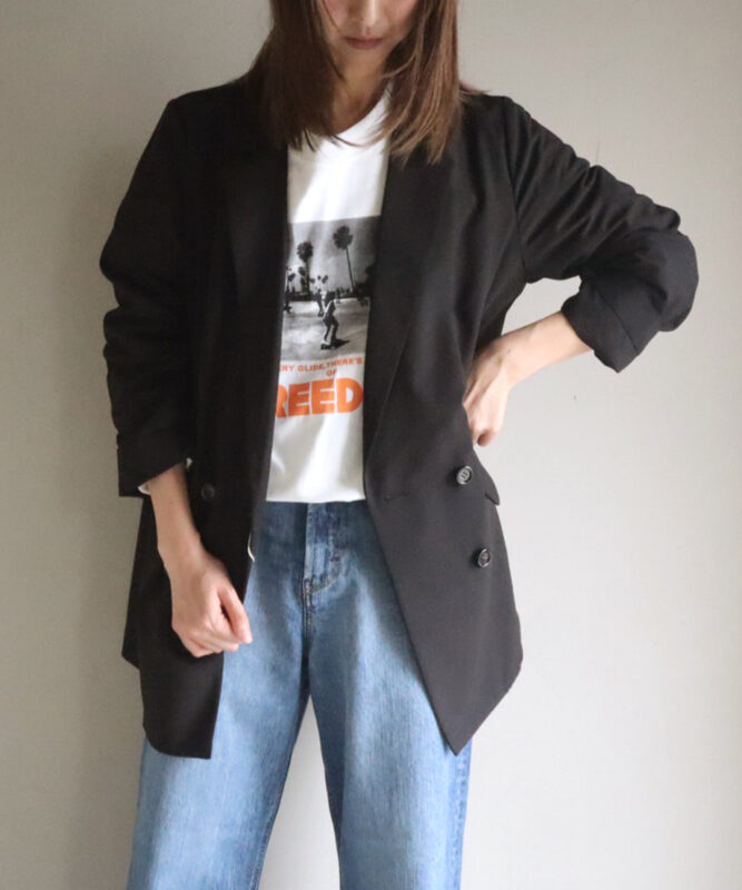 メンズライクなボックスシルエットが魅力のダブルジャケット。小ぶりなラペルと軽やかな素材感で、きちんと感がありながらも堅すぎず、女性らしいムードで着こなせます。