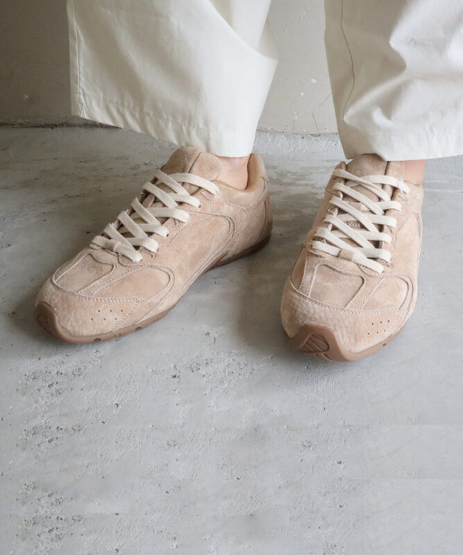 リッチ感漂うオールスエードのスニーカー。今季らしいデザイン性のある薄底シルエットで、カジュアルにもキレイめコーデの外しにも活躍する万能アイテムです。