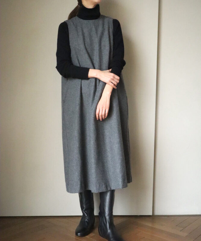 後ろスリットがさりげないアクセントになったツイードノースリーブワンピース。広めのアームホールでニットやブラウスとのレイヤードがしやすい一着です。素材には、世界三大織物産地として知られる尾州で織られた上質なウールツイードを使用。軽さ・柔らかさ・暖かさを兼ね備え、ツイードならではの美しい表情とほどよいカジュアル感が魅力。