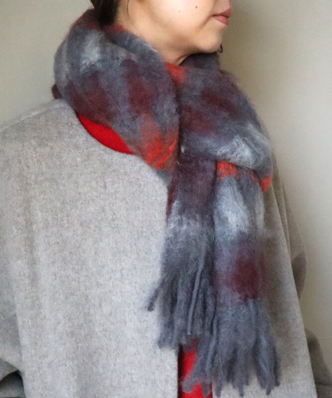 上質モヘア混素材を使った、軽く柔らかく保温性抜群の主役級マフラー。控えめで印象的な柄がコーデのアクセントになり、ユニセックスでギフトにも最適。ボリュームのある巻き方でカジュアルにもキレイめにも合わせやすい万能アイテム。