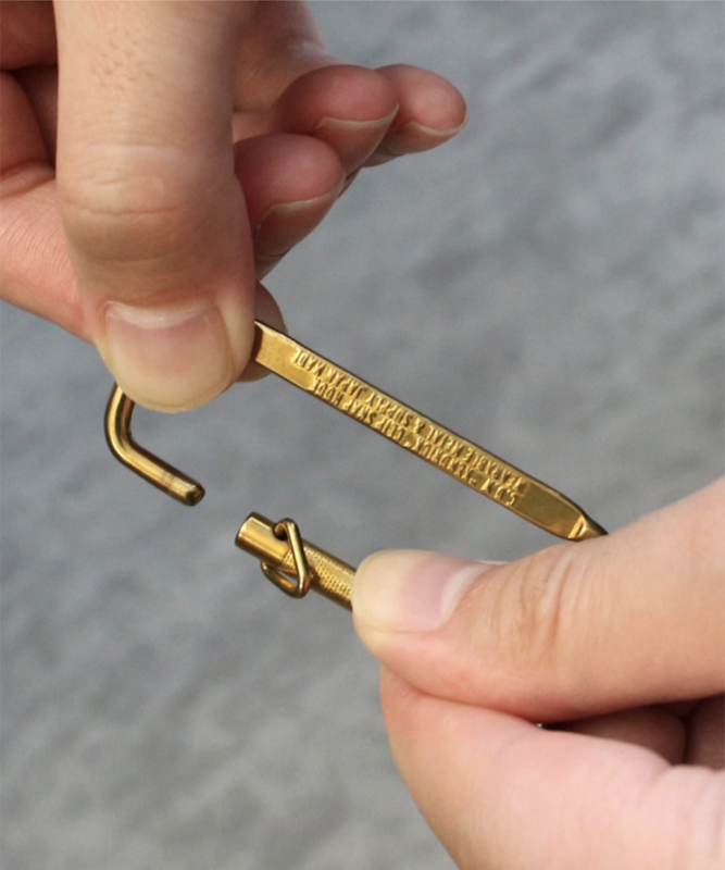 シンプルながら合理的な構造は、現在主流となっているカラビナの原型ともいえるシステムです。