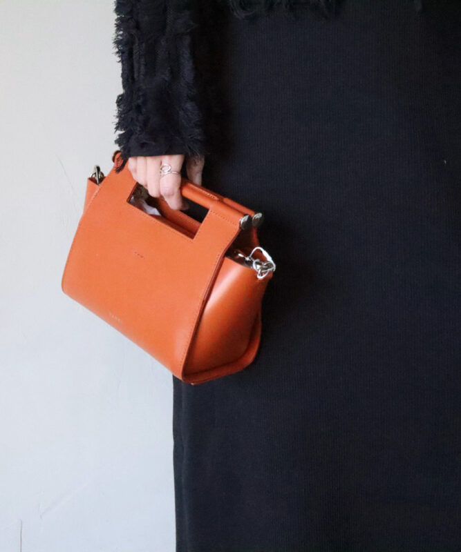 W FACEレザーを使用した、洗練されたクロスボディバッグ。端正なスクエアフォルムに、ハンドル一体型のミニマルなデザインが映える一品です。メタルパーツを効かせた持ち手がさりげないモード感を添え、付属のショルダーストラップで肩掛け・斜め掛けも楽しめる2WAY仕様。マグネット開閉で出し入れしやすく、コンパクトながら必需品がきちんと収まる実用的なサイズ感。