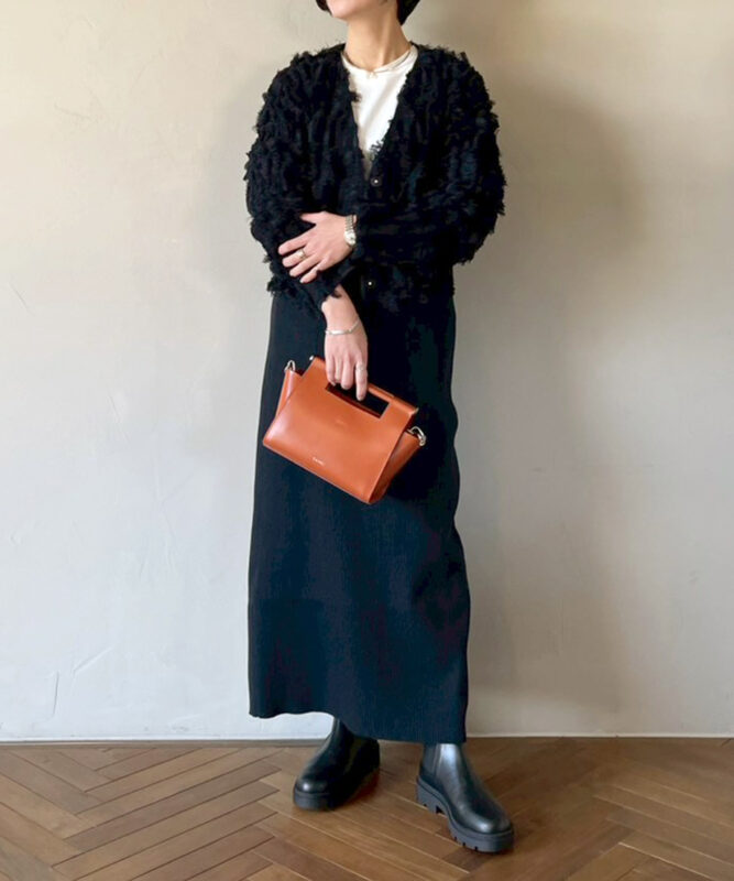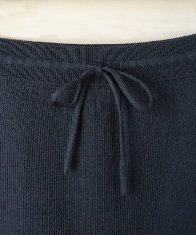 ラインを拾いにくい、しっかりとした編地のニットリブスカート。ストレートシルエットが縦のラインを強調し、すっきりとした印象を演出します。さりげないポケットデザインがアクセントになり、クリーンにもカジュアルにも対応。オールシーズン活躍する万能アイテムで、フリンジジャケット(FJ7001Y)とのセットアップスタイルもおすすめ。