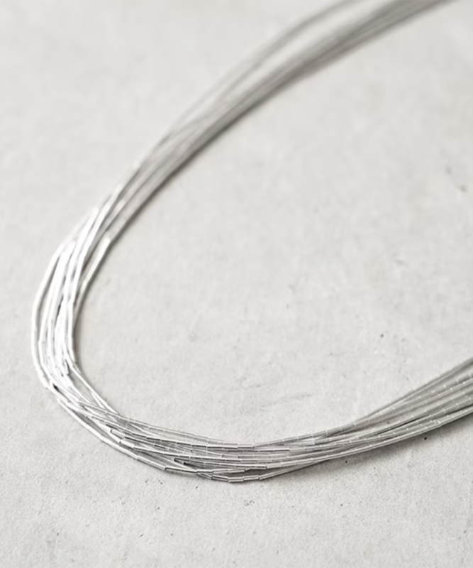 極細のスターリングシルバー製ビーズを贅沢に5連で仕立てたネックレス。 約75cmのロング丈で、シンプルながら存在感があり、レイヤードにも一連使いにも映える一本です。 Native SilverStreams 26,400円