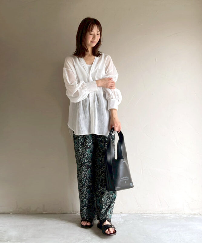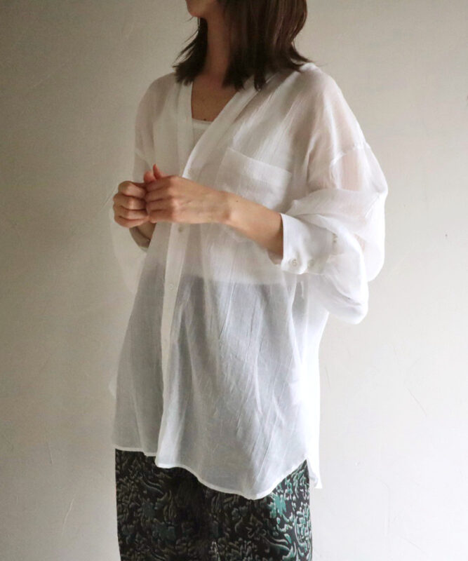 経にリネン、緯に自然なムラ感のあるコットンを2本取りで綾織りした生地を使用。厚みがありながら単色でも奥行きのある表情が魅力です。春のコーデを引き締めるロングベストや、季節の変わり目から活躍するベーシックパンツを展開。ロングベストはパンツはもちろん、ワンピースとのレイヤードにもおすすめ。