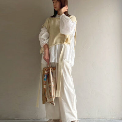 素材にこだわったモノトーンのアイテム。リラックス感のあるシルエットも魅力的です。