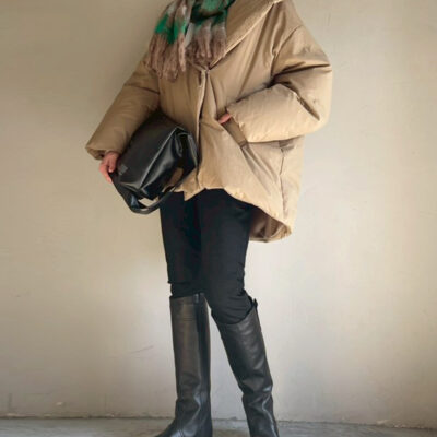 ファーベスト。軽く柔らかなプードルボアを使用し、裾にたっぷりタックを入れた立体的なシルエットが魅力です。カジュアルながら女性らしさも感じられる仕上がりに。程よい丈感と繊細なファスナー使いで合わせやすく、前身頃の斜め切り替えが個性的なアクセントに。内側には蓄熱中綿を入れ、スタンドカラーで暖かさも◎