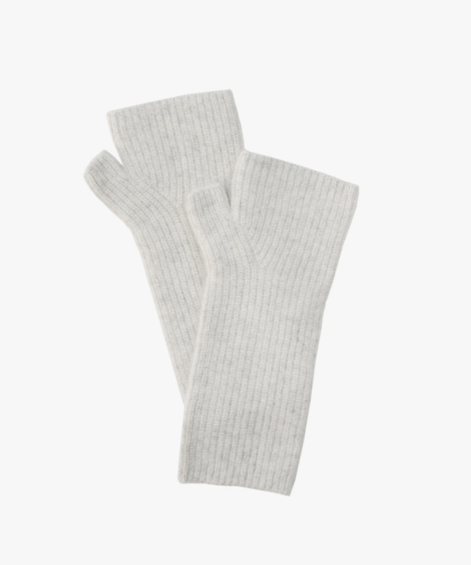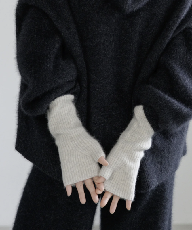 ライトグレーのアームウォーマーは、柔らかな色合いがどんなコーディネートにも馴染みやすい万能アイテム。