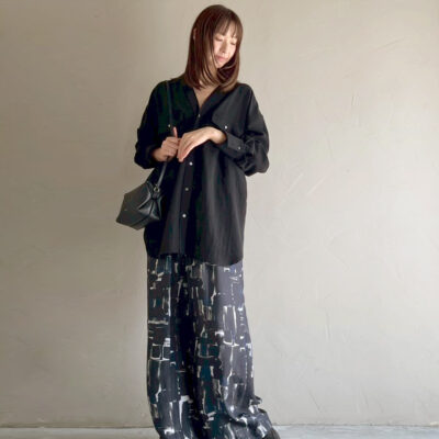 ボートネックプルオーバーブラウスにリラックスシルエットのパンツを合わせた、抜け感のある大人のリラックスコーデ。軽やかな素材感とゆったりとしたシルエットがほどよくラフな雰囲気を演出し、ナチュラルで洗練されたスタイルに。