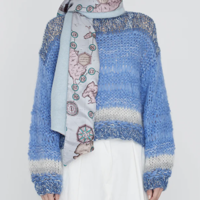 日本に数台しかない希少なインレイ編機で作り上げたエアリースポンジッシュニットのカーディガン。